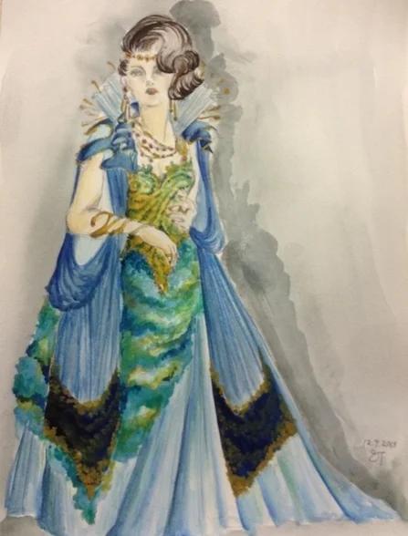 In this assignment we were asked to take a rendering from a production and reproduce the costume. Research was done to find out fabrics used and for production photos of the actual costume. Costume rendering chosen was from 1972's production of Pippin designed by Patricia Zipprodt