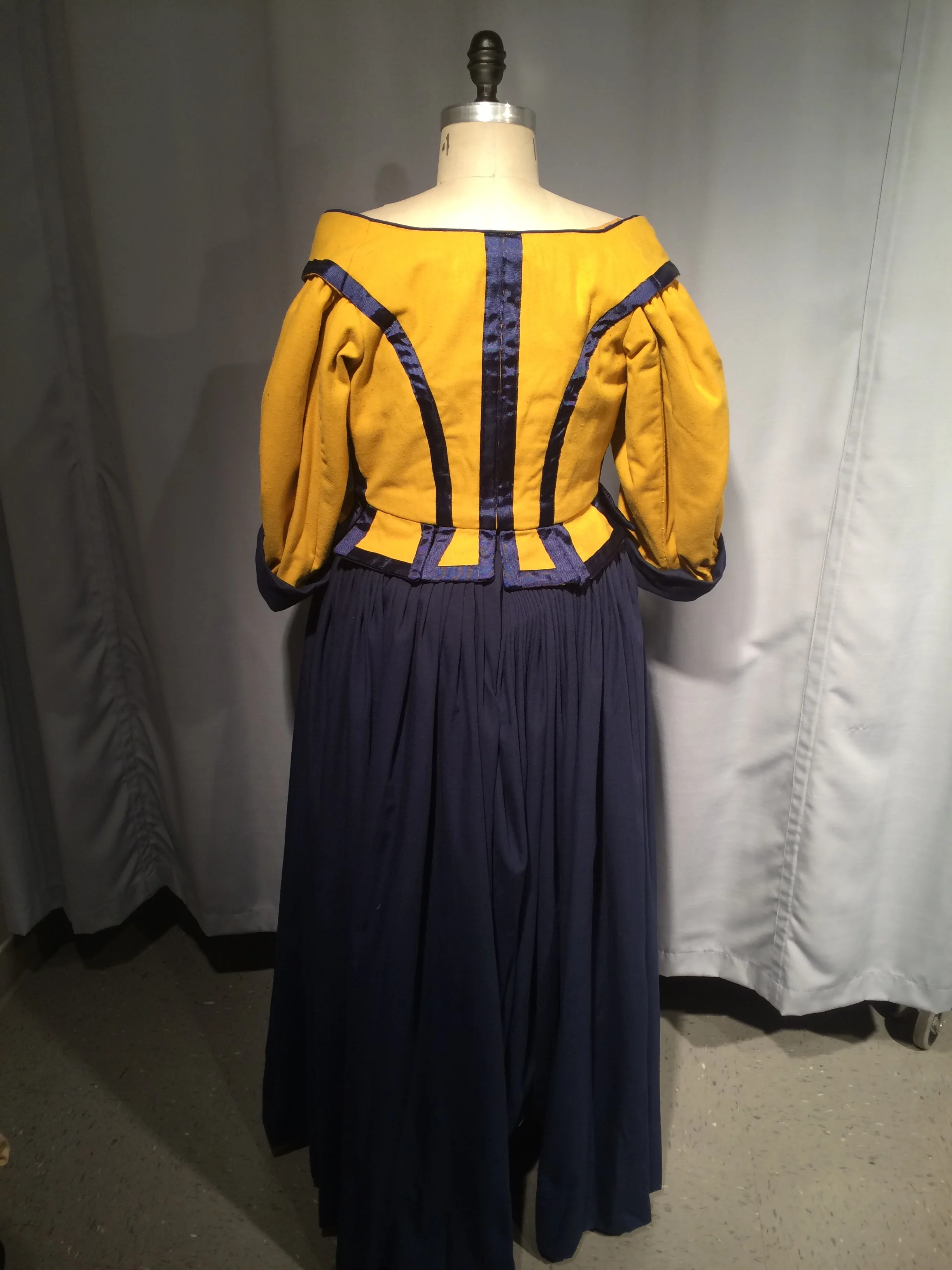 Inspiration for the costume was from Jan Vermeer's painting Girl Reading a Letter by an Open Window